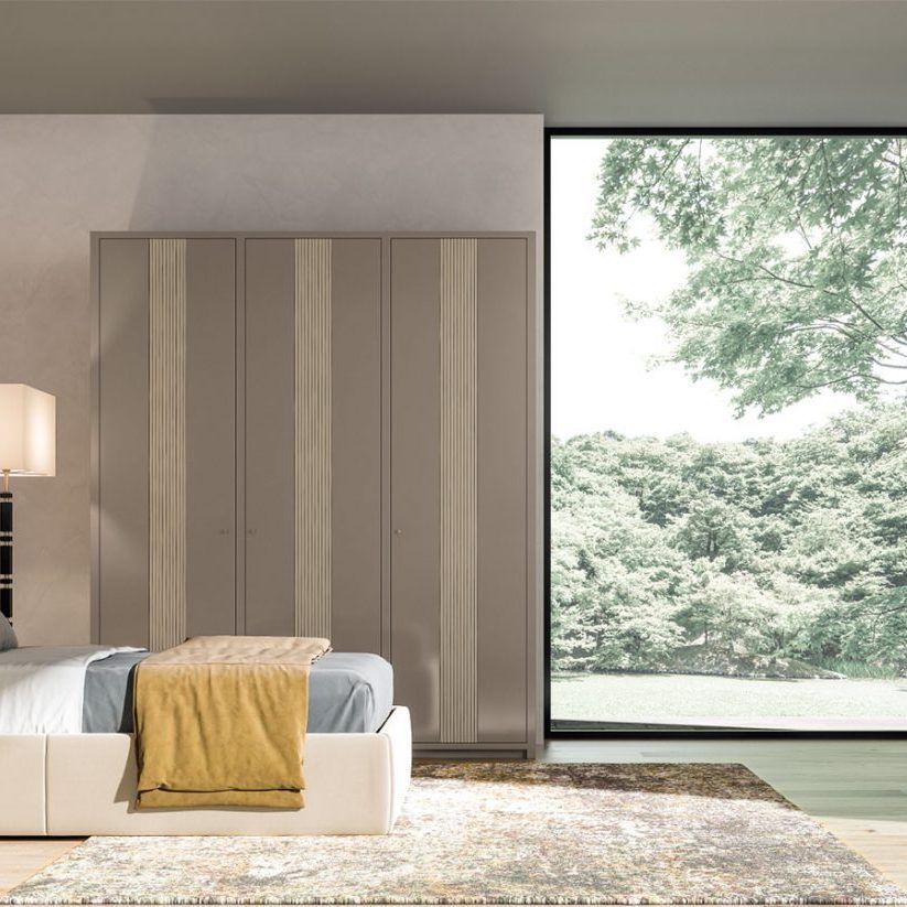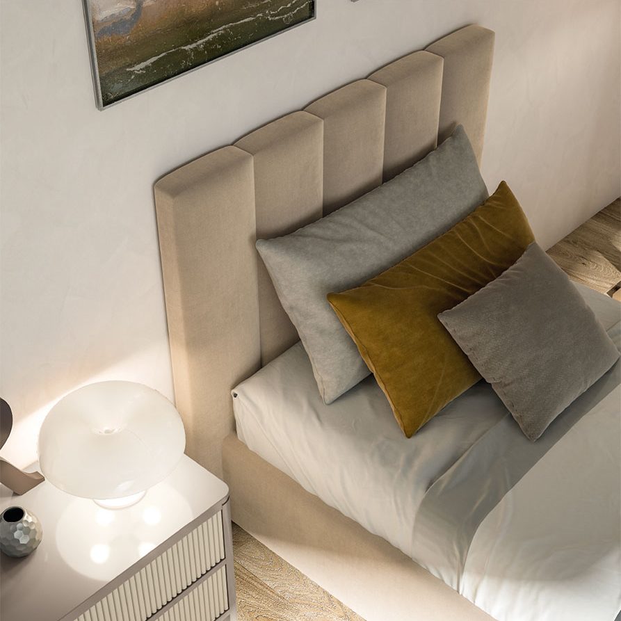 CASSETTI Legno con frontali disegno cannettè. Interno legno laccato e rivestito in microfibra.