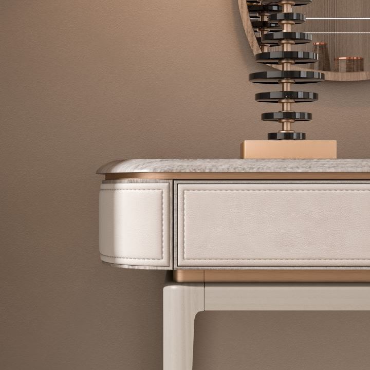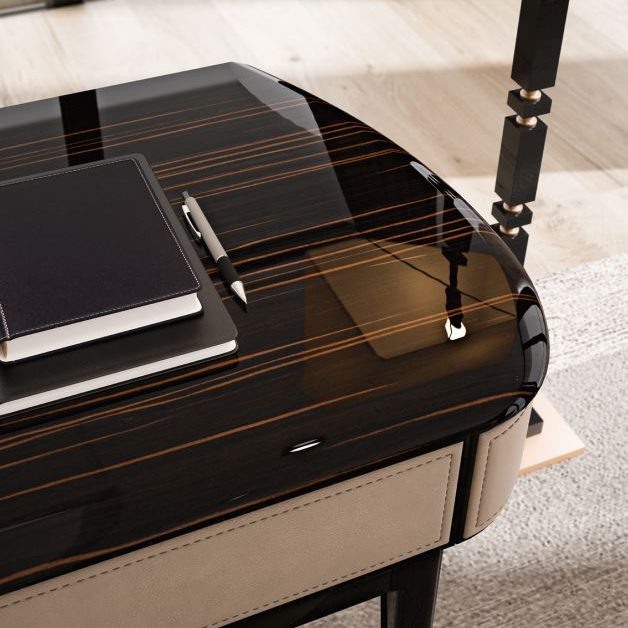 TOP Legno con bordo sagomato, impiallacciato o laccato, oppure in marmo. Sottotop in legno rivestito con pelle o tessuto.