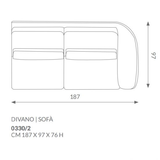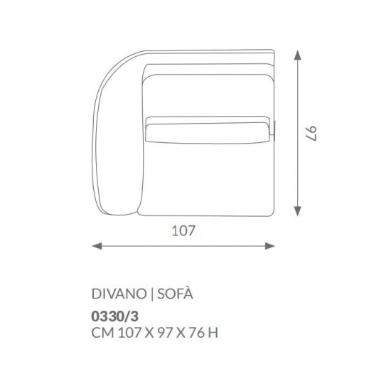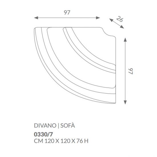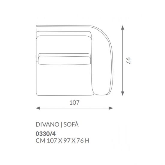 Struttura / Seduta Telaio in legno con imbottitura in poliuretano espanso a densità differenziate. Seduta con cinghie elastiche.