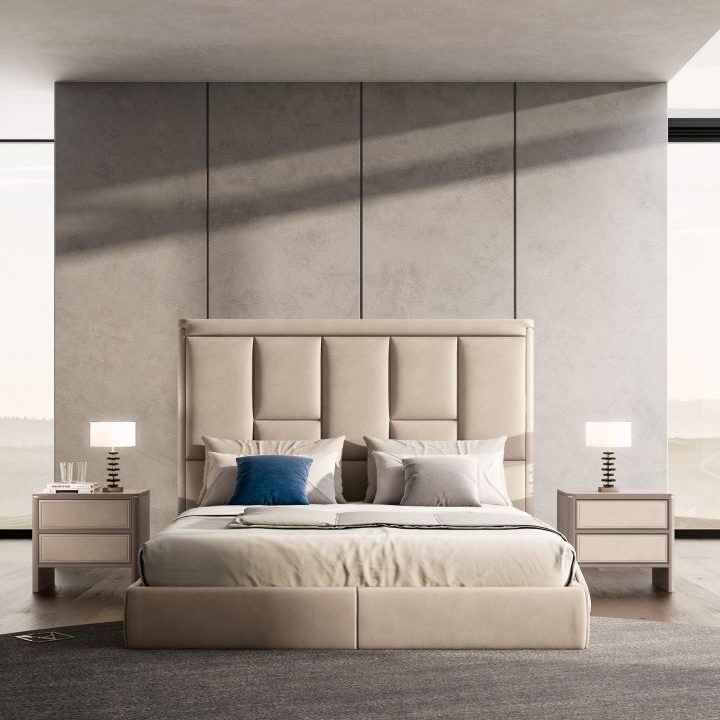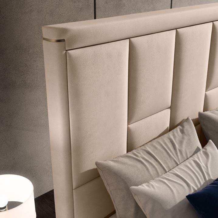 TESTIERA Legno rivestito con gomme. Dettagli in metallo.