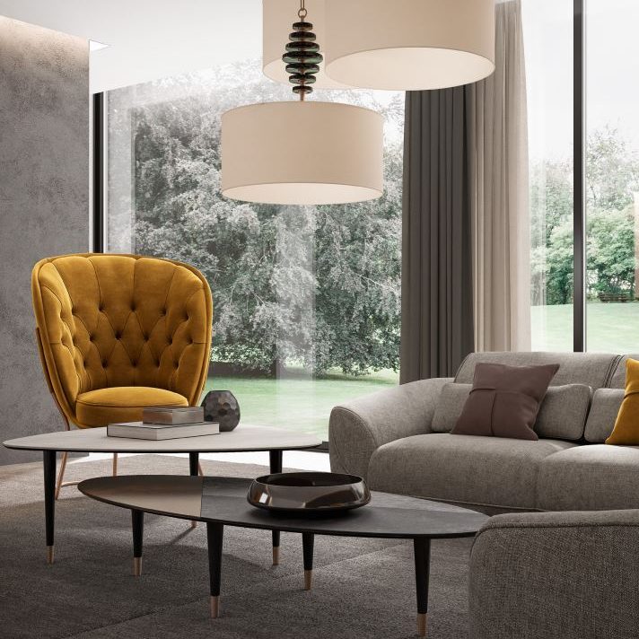 Struttura / Seduta Telaio in legno con imbottitura in poliuretano espanso a densità differenziate.