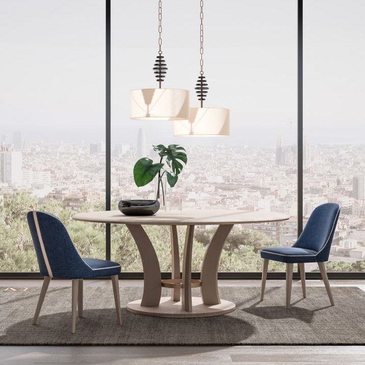 STRUTTURA / SEDUTA Telaio in legno curvato, imbottitura con gomma a densità differenziate. Gambe in legno di faggio