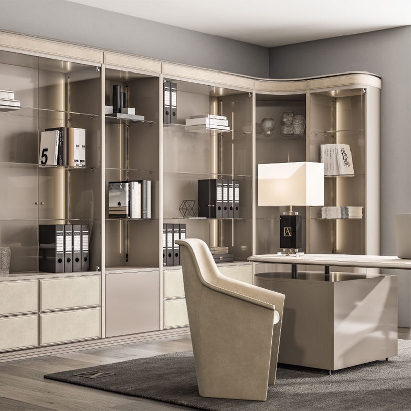 STRUTTURA Legno impiallacciato o laccato. Inserti in pelle o tessuto. Dettagli in metallo.
