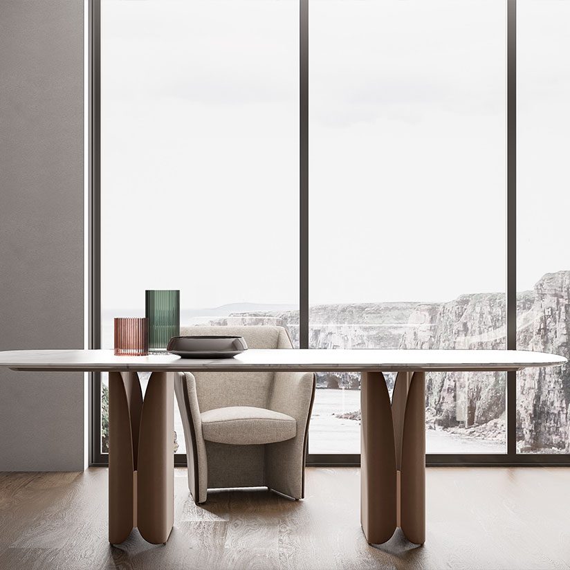 STRUTTURA Legno laccato o impiallacciato sagomato e rivestito in pelle o tessuto.