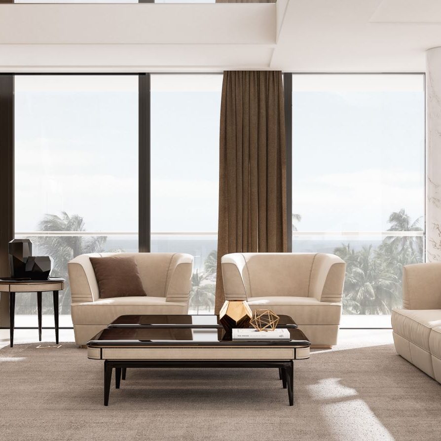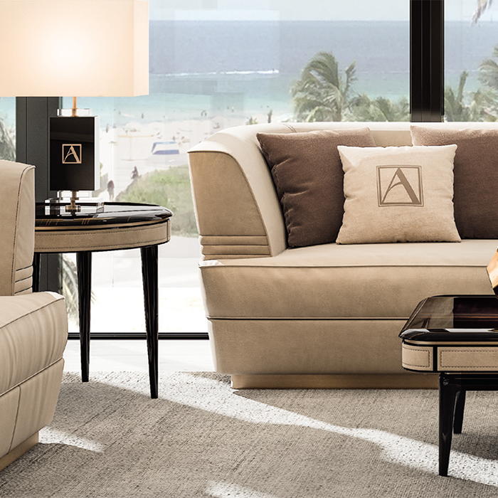 TOP Legno con bordo sagomato, impiallacciato o laccato, oppure in marmo. Dettagli in metallo. Sottotop in legno rivestito con pelle o tessuto.