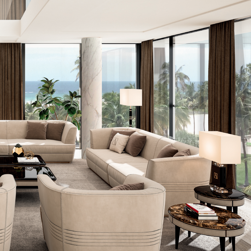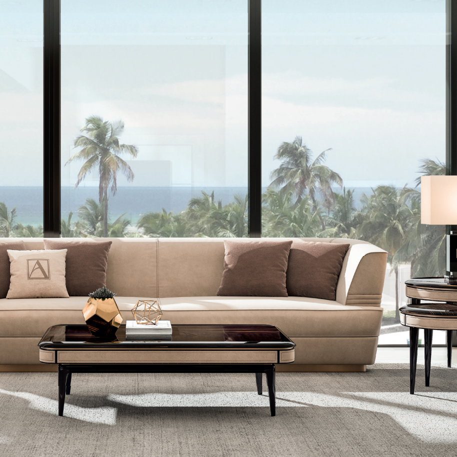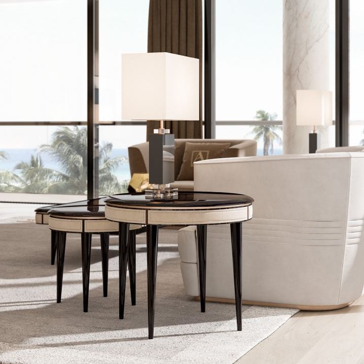 TOP Legno con bordo sagomato, impiallacciato o laccato, oppure in marmo. Dettagli in metallo. Sottotop in legno rivestito con pelle o tessuto.